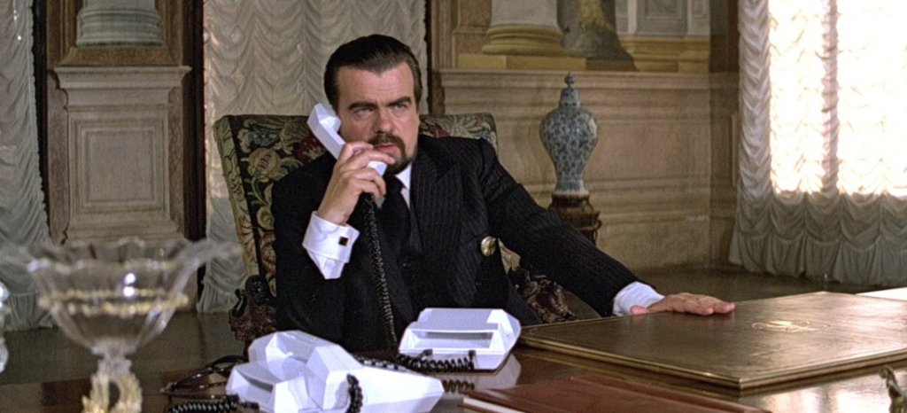 The Villain: Max Zorin. French Industrialist. Widely varied business portfolio that includes microchip processing, equine science and research (kind of), horse-racing, petroleum, and… blimps. Fluent in five languages. He has no accent… other than the obvious one from New York. But who am I kidding? He’s Christopher freakin’ Walken! He has his own accent. I like him in this film, but I do not love him. Not exactly sure why. Maybe it’s because he hadn’t quite become a caricature of himself just yet. It could be worse. (And it is. Just keep reading.)