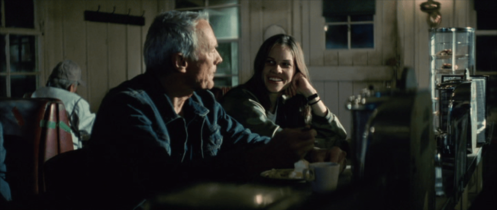 When he has the opportunity, Eastwood likes to shoot in low lighting, giving off a noir-like feel. Minimal lighting has often been a key signature of his films, but when it’s paired with Hillary Swank’s performance, the scene becomes so much more.